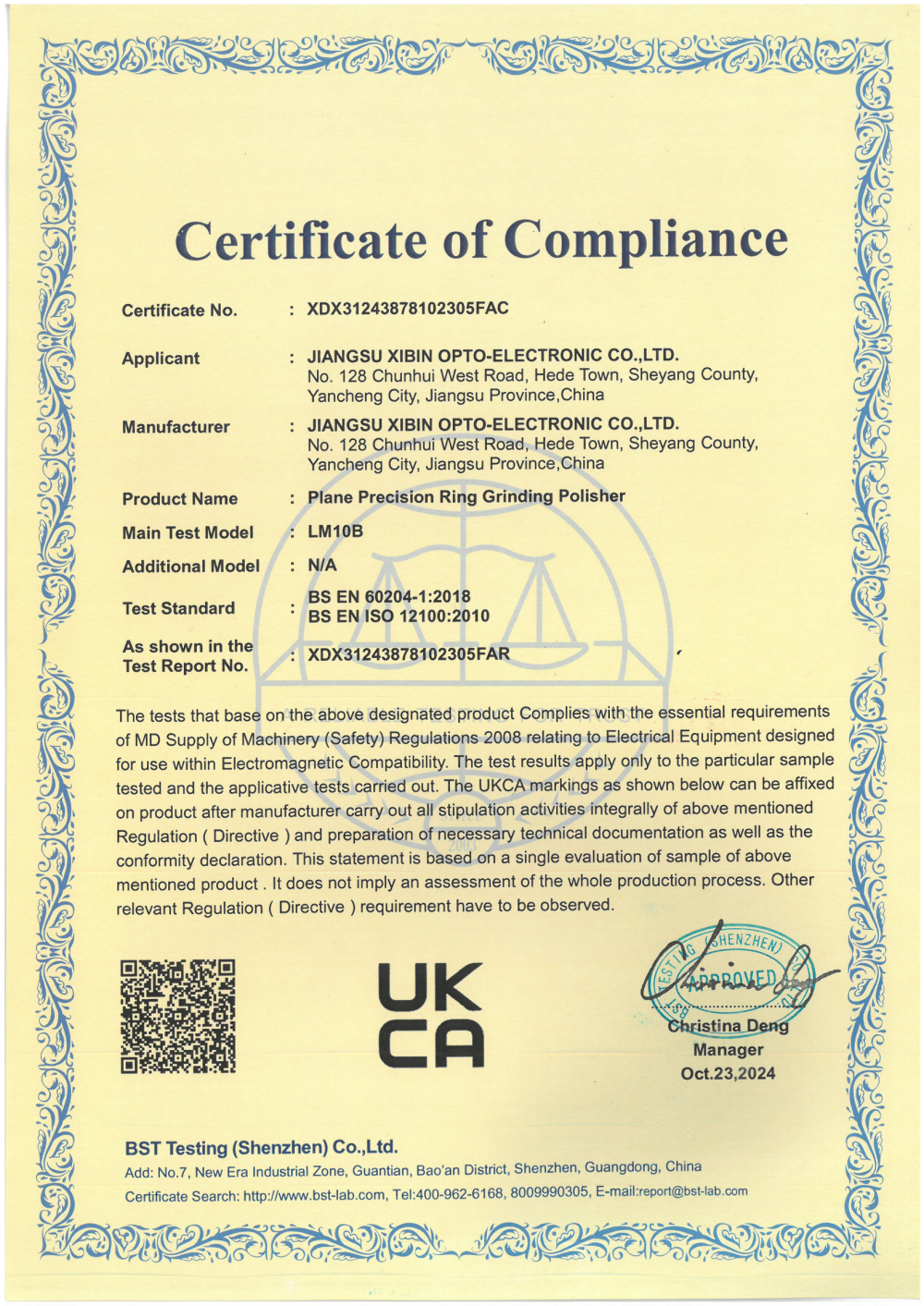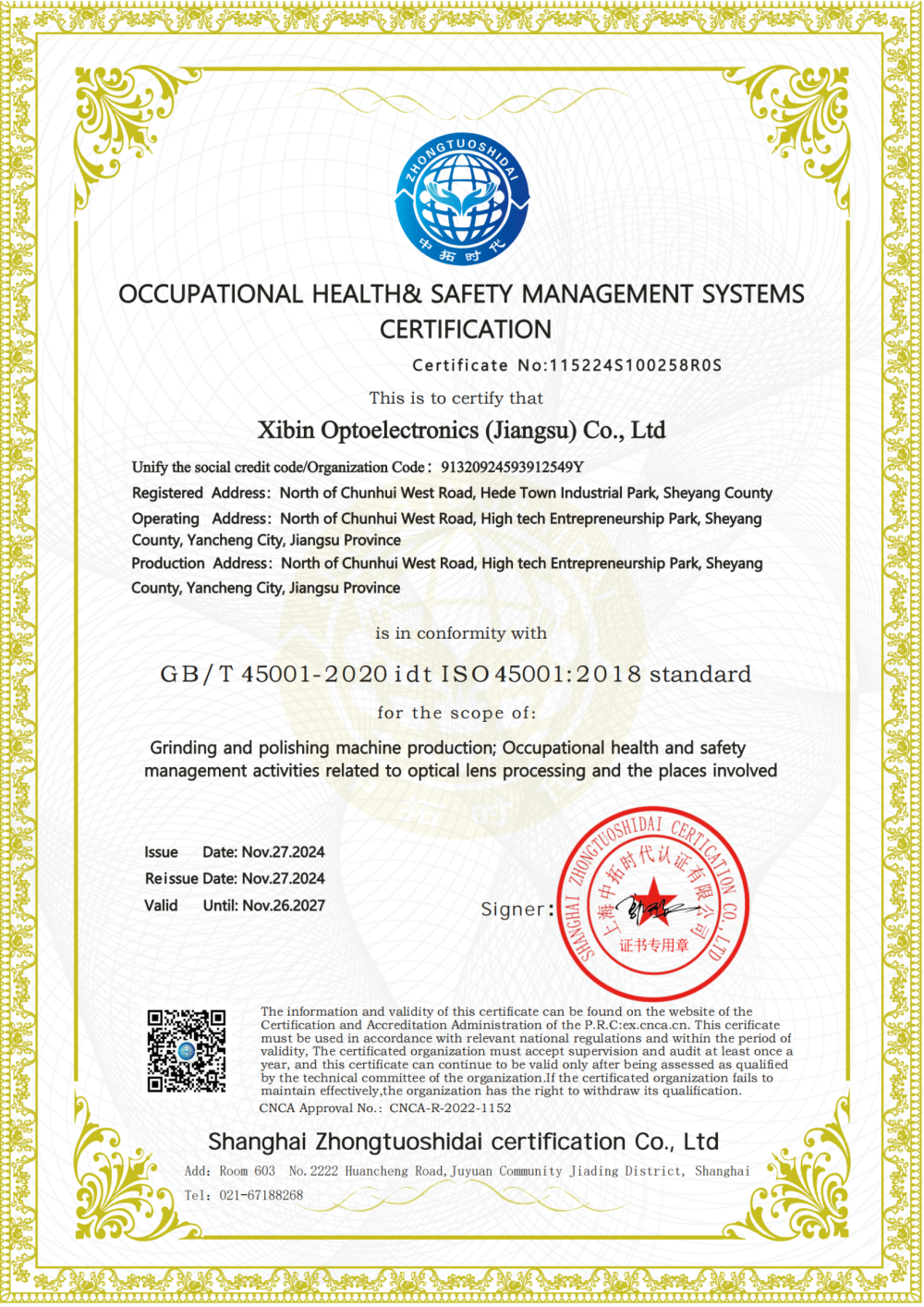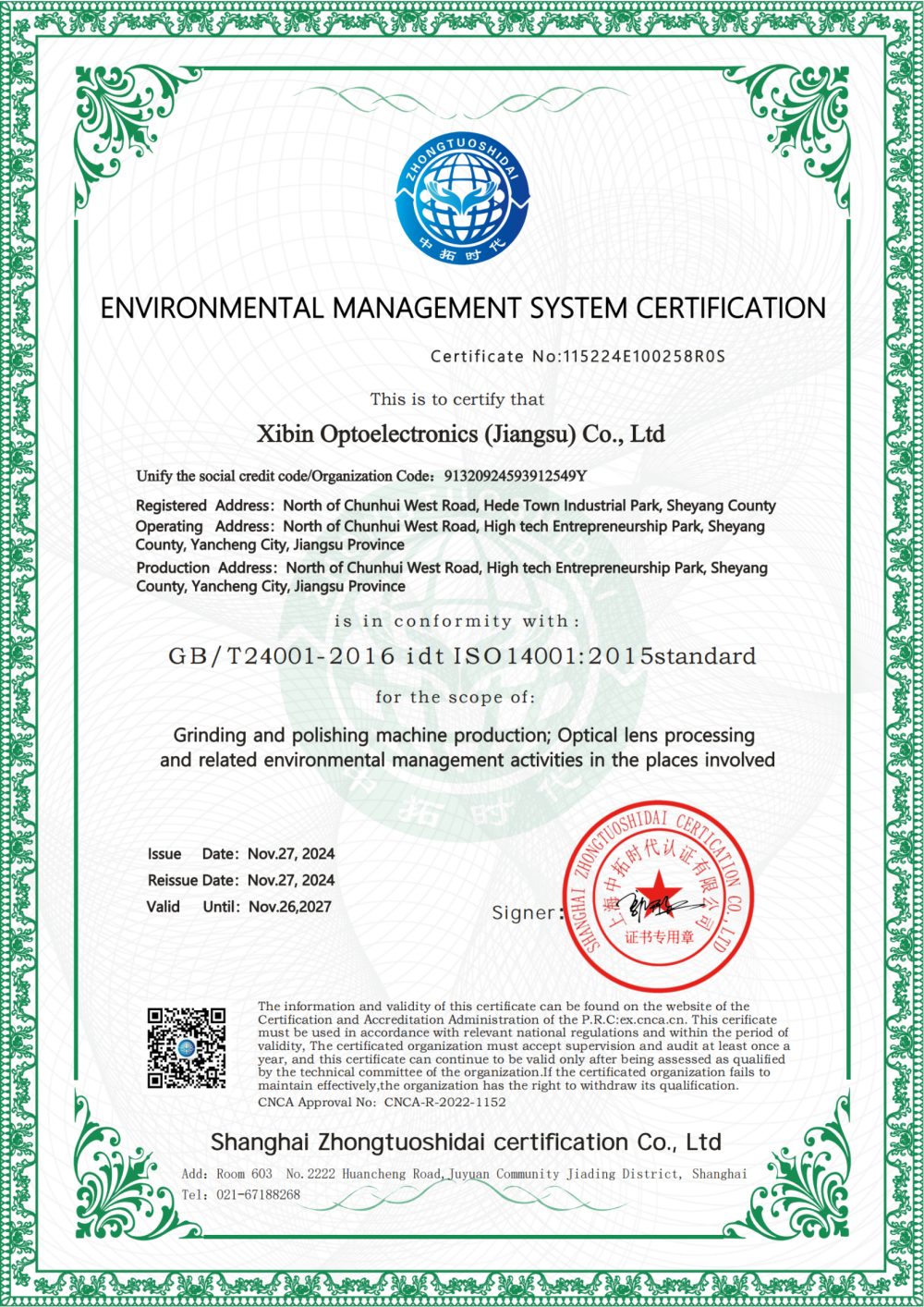 Xibin Optoelectronics (Jiangsu) Co., Ltd. расположена в Шэянге, городе Янчэнге, провинции Цзянсу, в родном месте прекрасных красноголовых журавлей. Площадь завода составляет 40 мю, площадь производственного и обработочного цеха — 20 тыс. кв. метров, а площадь оптического обработочного лаборатории класса 10 000 — 2500 кв. метров. Его штаб-квартира, Wuxi Xibin Optoelectronic Equipment Co., Ltd., находится в Вуси, на прекрасном берегу озера Тайху. В 2023 году в Сяане был создан центр исследований и разработок по роботному полированию.