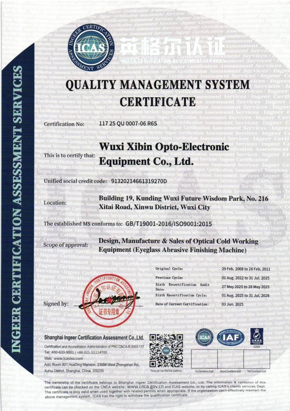 Компания имеет сертификат соответствия международной системы менеджмента качества ISO9001:2015 и обладает рядом патентов на изобретения и сертификатами CE! Лидирующая технология, надежный качество и удовлетворение потребностей клиентов — это вечные принципы нашей компании! Мы с удовольствием приветствуем представителей всех сфер деятельности на визит в компанию для консультаций и переговоров! Xibin Optoelectronics желает стать вашим надёжным партнером!